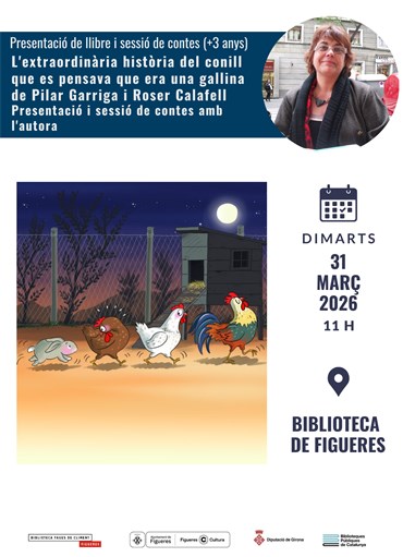 | Presentació de llibre i sessió de contes (+ 3 anys). L'extraordinària història del conill que es pensava que era una gallina, de Pilar Garriga i Roser Calafell |