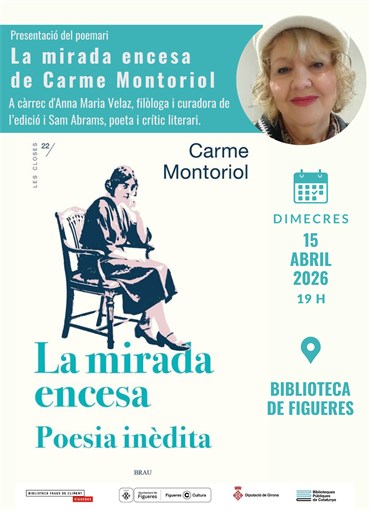 | Presentació del poemari La mirada encesa, de Carme Montoriol, a càrrec d'Anna Maria Velaz, filòloga i curadora de l’edició i Sam Abrams, poeta i crític literari. |