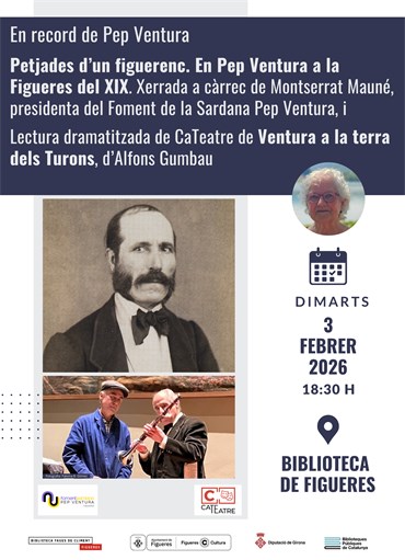 Tot seguit Montserrat Mauné, presidenta del Foment de la Sardana Pep Ventura, glossarà la figura del prolífic compositor i mestre de la tenora, amb la conferència «Petjades d’un figuerenc. En Pep Ventura a la Figueres del XIX»