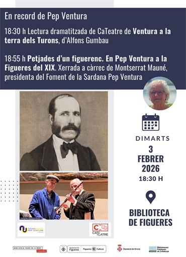 Tot seguit Montserrat Mauné, presidenta del Foment de la Sardana Pep Ventura, glossarà la figura del prolífic compositor i mestre de la tenora, amb la conferència «Petjades d’un figuerenc. En Pep Ventura a la Figueres del XIX»